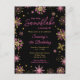 Cette élégante et glamour carte d'invitation postale présente des flocons de neige et des étincelles dorés et roses en faux brillant aquarelle sur fond noir. Elle est parfaite pour une fête d'anniversaire sur le thème de l'hiver ou de Noël.