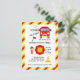 Invitation d'anniversaire de pompier avec une mise en page simple en noir et blanc personnalisable selon vos spécificités. Graphiques par PremiumClipart.