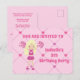 Cette invitation de fête d'anniversaire cheerleading rose adorable présente une jolie fille blonde cheerleader en uniforme de cheerleading tenant des pompons roses. Personnalisez cette invitation de fête pour enfants mignonne avec le nom de votre enfant en rose charmant et écrivez vos coordonnées au dos de cette carte postale.