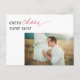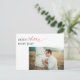 Plus de joie, l'année prochaine. Une carte postale de faire-part de grossesse pour surprendre votre famille et vos amis. Doté d'une police de calligraphie rouge pour mettre davantage l'accent sur le nouveau paquet de joie qui entre dans vos vies. Carte postale moderne mais simple de vacances photo pour partager l'arrivée du bébé.