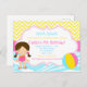 Carte de remerciement pour une fête de piscine avec une fille brune à offrir à vos invités en souvenir de l'occasion. Idéal pour les fêtes estivales. Les mots peuvent être modifiés pour répondre à vos besoins.