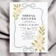 Invités Invitations à honorer la future mariée avec cette élégante et intemporelle invitation à la douche nuptiale. Encadré par de gracieuses arcs gris et des lignes fluides, le design est orné de délicats flancs crème et de feuilles verts sauge, créant un look romantique et raffiné. Le texte est placé dans une police serif classique, en équilibre parfait simplicité et sophistication. Idéale pour les douches nuptiales vintages, de jardin ou neutres, cette invitation donne le ton d'une fête chaleureuse, chic et chaleureuse. Personnalisez le vôtre aujourd'hui pour créer une impression durable pour cette occasion spéciale !