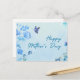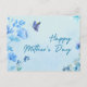 Cette carte postale est une célébration de la fête des mères, conçue avec une collection sereine et gracieuse d’illustrations florales bleues. Il présente une palette de bleus cool, reflétant la tranquillité et la beauté d'un ciel de printemps clair. Les fleurs sont restituées dans des tons et des tailles différents, du bleu pâle au bleu profond, et sont astucieusement disposées pour créer un sentiment d'élégance naturelle. Un papillon délicat, peint dans des teintes assorties, ajoute un élément de grâce et de mouvement à la scène. Son emplacement près du coin supérieur apparaît comme s'il venait de s'allumer sur la carte, apportant avec elle un message de renouveau et la joie de la saison. Le message "Bonne Fête des Mères" est écrit dans une police fluide et cursive qui traverse le milieu de la carte postale, complétant la douceur de l'arrière - plan aquarelle. Le design de la carte, avec son mélange harmonieux de fleurs et d'écriture, capture le sentiment profond de l'occasion d'une manière à la fois intemporelle et rafraîchissante.