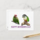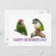 Une perruche masquée rouge (confure à tête de cerise à l'ada) se trouve au-dessus des lettres qui décrivent "Bonne fête des mères" sur cette carte postale "Fête des mères"