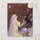 Œuvre d'art originale. Une dame aux cheveux violets, des météores tombant du ciel, la lune semble être tenue par un arbre très fort et une baguette magique est protégée à l'intérieur d'un globe.