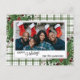 Unique, classique, tendance, jolie et décorative Carte de vacances. Joy Holidays salue le texte et l'espace pour customiser ou personnaliser avec une photo, nom de famille (ou noms individuels) et message de votre choix. encadré de baies rouges de vin de Bourgogne et de bouquets de fleurs vert foncé sur un élégant cottage de campagne français vert et blanc en vichy vérifiez l'arrière - plan.