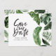 Feuillage tropical et lettrage à la main mariage monochrome enregistrer la carte postale date. Une partie d'une suite mariage.