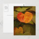 Carte postale avec photo en forme de coeur feuille d'automne rouge et orange de cercis canadensis Forest Pansy