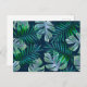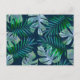 Watercolor tropics palms and monstera leaves on a navy blue background.