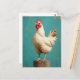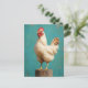 Une charmante peinture à l'huile rustique représentant un fier poulet blanc debout sur un moignon en bois patiné. Contre un arrière - plan turquoise en détresse aux accents d'orange, cette oeuvre rayonne du charme d'une ferme et du caractère vintage.