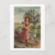 Carte Postale Fille Agneau de marche, poussin et coq