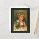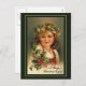 Conçu par Susan Epps Oliver. Une belle image vintage de Noël d'une petite fille dans une robe rouge et blanche et portant une couronne sainte dans ses cheveux.