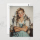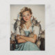 Une jeune femme charmante dans des couloirs vintages se tient paisiblement, entourée de lapins adorables. Son sourire chaleureux et son expression douce créent une scène chaleureuse et nostalgique, qui rappelle l'art classique américain.