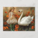 Une fille blonde et un cygne géant dans une prairie de pavot l'art imaginaire surréaliste