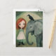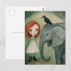 Carte Postale Fille et éléphant et oiseau