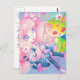 Carte Postale Fille japonaise Wamono avec Kawaii Kitten