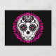 Ma version d'un crâne sucré super mignon en blanc, rose chaud et noir avec beaucoup d'élégants accents sur un arrière - plan coordinateur. Montré ici sur une carte postale.