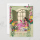 Carte Postale Fille lisant sur un balcon estival avec des chats