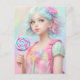 Envoi d'une éclat de fantaisie avec cette carte postale de portraits générés par l'IA - une fille ravissante tenant une sucette dans des teintes pastel oniriques ! Cette création enchanteresse capte l'essence des délices sucrés et du charme imaginatif.