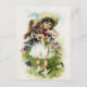 Cette belle carte postale vintage présente une petite fille tenant un panier tressé rempli de différents panneaux colorés. Charmant et élégant, parfait pour les amateurs d'art vintage, antique, chic et barbecue ou pour enfants.