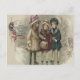 Il est temps de fêter les fêtes. Cette impression vintage de Noël représente des enfants patinant sur un étang gelé pendant qu'il neige.