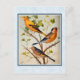 Carte postale avec une image vintage numériquement nettoyée et améliorée de Greenfinch, Bullfinch et Linnet. Illustration de l'histoire naturelle colorée par W. Rutledge du Illustrated Guide of Canaries and Other Cage-Birds, 1878. Cadre et dossier avec une texture parchemin bleu clair.
