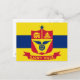 Postcard with flag of city of St Paul, Minnesota; flag with three horizontal stripes of blue and yellow with red emblem in the center