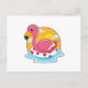 Carte Postale Flamant rose à la baignade avec Bouée