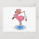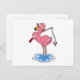 Carte Postale Flamant rose à la pêche avec une canne à pêche