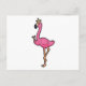 Carte Postale Flamant rose en roi avec couronne et bâton