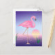 Illustration rose de Flamant rose. L'oiseau rose lumineux se tient dans l'eau entourée par des plantes.