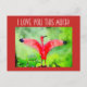 Cette carte postale rouge présente une aquarelle d'un flamant rose avec des ailes tendues pour dire : "Je t'aime tant !"