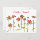 Une carte postale gaie avec des fleurs de zinnia rouge dessinées dans un stylo noir et de l'encre à l'aquarelle. Vous pouvez trouver des autocollants assortis, papeterie, cartes de voeux, et des invitations à aller avec cette carte postale!