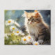 Carte postale aquarelle numérique de fleurs de marguerite vives et vibrantes pour ceux qui sont nés en avril avec un adorable chaton duveteux. Envoyez à votre proche une carte postale spéciale de fleur du mois de naissance !