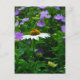 Carte Postale Fleur de cône blanc, fleurs pourpres et papillon