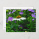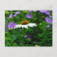 Carte Postale Fleur de cône blanc, fleurs violettes et papillon