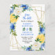 Cette belle et élégante carte postale de date présente des fleurs bleu, jaune et blanc aquarelle avec feuillage sur un cadre géométrique or. Le texte combine écriture manuscrite et polices serif pour un look élégant et moderne. Il est parfait pour un mariage rustique de printemps ou d'été.
