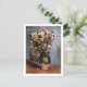 Carte postale d'art avec le tableau de Paul Cezanne (1839-1906), intitulé Fleurs dans un pot d'olive (vers 1880). Un beau bouquet de différentes fleurs en rose, jaune et blanc dans un pot vert. Cezanne était une artiste franco-postimpressionniste.
