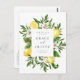 Démarrez votre célébration de mariage avec une touche fraîche et moderne en utilisant cette carte postale "Save the Date" personnalisable avec un code QR, mettant en vedette un design vibrant à l'aquarelle de citrons et un cadre de verdure. Le thème joyeux et citronné ajoute une touche amusante et estivale, tandis que le code QR inclus permet à vos invités d'accéder facilement aux détails de votre mariage, à la page de RSVP ou au site web de votre mariage en un simple scan. Personnalisez-la avec vos noms, date de mariage et toute autre information importante. Que vous planifiez un mariage dans un jardin ou une célébration tropicale, cette carte postale est un moyen élégant et pratique de vous assurer que vos invités sauvegardent la date !