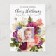 Une élégante et magnifique commande de service funéraire personnalisée à l'aquarelle botanique, carte postale commémorative de deuil. Cette carte funéraire est la version qui vous permet d'ajouter une photo. Célébrez la vie de votre proche dans un style de design floral unique. Bien que ces fleurs soient simplement à couper le souffle et peintes à la main. Le programme peut être facilement personnalisé avec votre propre texte pour créer un hommage spécial pour les funérailles, la commémoration ou la célébration de la vie de votre proche. Changez également la couleur de fond. Ce bouquet floral comprend des feuilles vert brillant, des hortensias, des roses roses, des marguerites pervenche, des fleurs dorées, des orchidées violettes et est un design peint à la main époustouflant. La carte postale peut être coordonnée avec d'autres articles de cette collection tels que la bougie, la carte de
