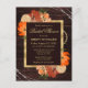 Magnifique conception florale de fleurs automnales aquarelles rustiques orange brûlé sur un fond en bois marron avec une bordure en feuille d'or et des guirlandes lumineuses