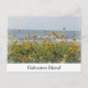 Fleurs sauvages dans la dune de sable et les vagues qui s'écrasent sur l'île de Galveston, Texas.