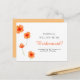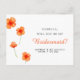 Simple "Serez-vous ma demoiselle d'honneur?" carte avec des fleurs d'aquarelle orange est parfait pour les mariages romantiques du printemps et de l'été.