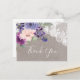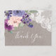 Cette carte postale de fleurs violettes et dentelle vous remercie est parfaite pour un mariage campagnard. Le design rustique chic présente un bel agencement de fleurs violettes, lilas et roses vertes avec dentelle fleurie blanche sur un élégant arrière - plan en lin. Personnalisez le dos de la carte postale avec vos noms, votre adresse de retour et un message de remerciement. Sinon, laissez la section de modèle de message de remerciement vide pour écrire à la main une note personnalisée réfléchie sur chaque carte après leur arrivée. Ces cartes peuvent être utilisées pour un mariage, une douche nuptiale ou tout événement spécial.