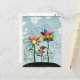 Un design mignon avec des fleurs blanches, presque roses, colorées et des vignes tourbillonnant devant un ciel de bande dessinée bleu avec des nuages blancs moelleux.