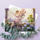 Carte postale d'art avec le tableau Flora (1913), de l'artiste française Louise Abbéma (1853-1927). Un portrait de Flora, qui dans la mythologie romaine était la déesse du printemps et des fleurs. Elle est entourée d'hydrangées violettes, de roses et de tournesols.
