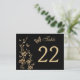 Cette carte postale en or ambré double face et en tableau floral noir a des papillons de parties scintillant SIMULÉS en or copieux et des vignes fleuries qui correspondent au faire-part de mariage ci-dessous. **Vous DEVEZ modifier le numéro 22 à chacun des numéros de table dont vous avez besoin, l'ajouter à votre panier, puis revenir et répéter le processus jusqu'à ce que vous ayez toutes les cartes numérotées individuellement dont vous avez besoin dans votre panier. EN OUTRE, si vous modifiez les polices ou la taille de la police, une partie du texte peut être coupée. Tout va s'imprimer comme vous le voyez sur votre écran. Je ne verrai pas les changements que vous faites, et Zazzle ne corrigera rien (fautes de frappe, mauvais alignement, etc.). Le texte est entièrement personnalisable. Si vous avez besoin d'aide pour ce produit, envoyez-moi un courriel AVANT de passer votre commande. Si vous avez besoin d'autres articles correspondants, veuillez envoyer votre demande par courriel à niteowlstudio@gmail.com