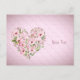 Carte postale florale à cœur rose