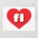 Cette carte postale est dotée d'un coeur rouge vif contenant les lettres coques inférieures pleines de blanc et arrondies fl, une abréviation ludique pour la Floride, l'état de soleil. Le verso de la carte postale est vide, en attendant vos sentiments manuscrits ou le texte customisé.