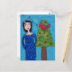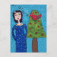 Carte Postale Folk Art Lady Apple Tree Red Bird Notes musicales